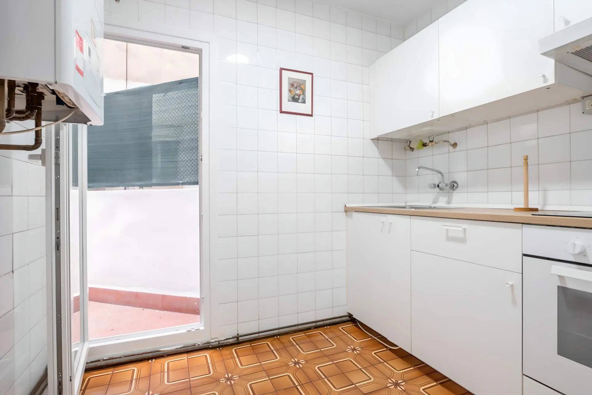 Located on the first floor of a building with an elevator, this property has two bedrooms, a living room with access to a terrace, one bathroom, and a separate kitchen also with access to a terrace. Although it is in good condition, the bathroom has been completely renovated, with wall paint, a terrace renovation, doors replaced, and the electrical system may be upgraded.